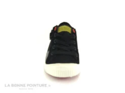 Le lacet noir passe à travers une huitaine d’oeillets métalliques gravés Kickers, permettant de fermer efficacement la chaussure.