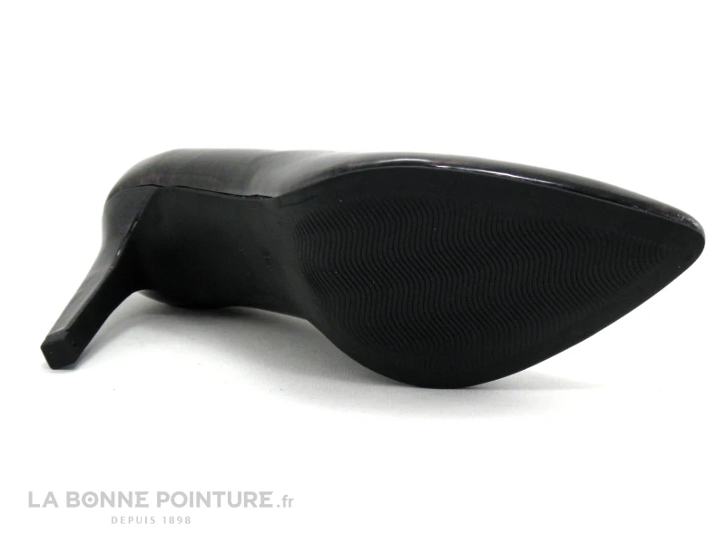Cette chaussure Femme à petit prix est noir verni, avec de discrètes nuances de rose et de violine.