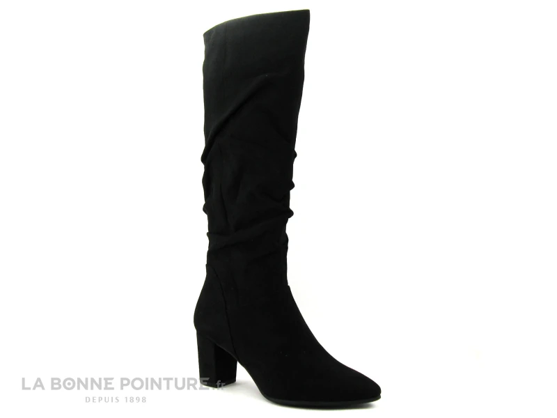 Cette longue botte noire Marco Tozzi 2-25519-27 est en textile velouté, avec la pointe effilée.