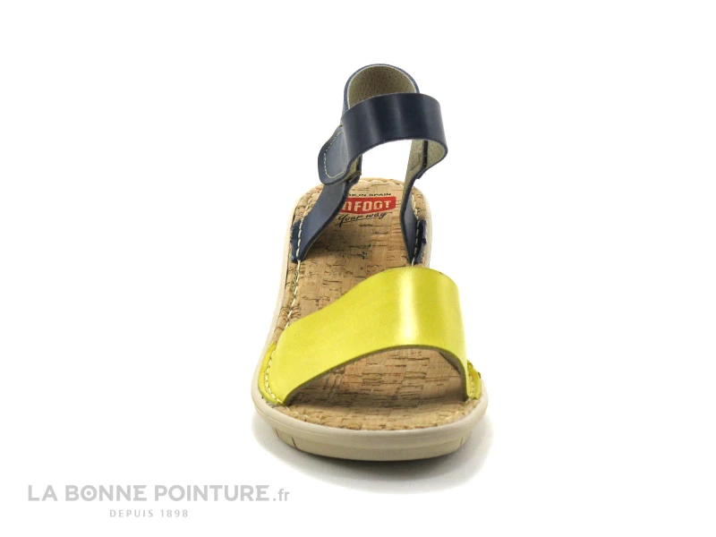 Un prix modéré pour ces jolis nu-pieds compensés en cuir jaune citron et bleu marine On Foot 60506 !